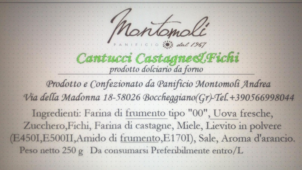 Sei in: Home1 / Shop2 / Mangiare3 / Dolcezze4 / Biscotti, Dolci e Snack5 / Cantucci sfusi con farina di castagne e fichi (Montomoli) 250g circa- al...