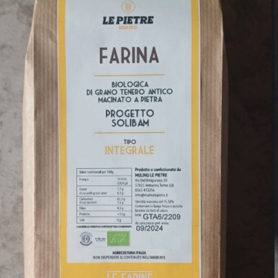 Processi di pulitura, selezionatura, macinazione, setacciatura dei grani fino all’insacco della farina avvengono presso il mulino Le Pietre. Allergeni: cereale contiene glutine