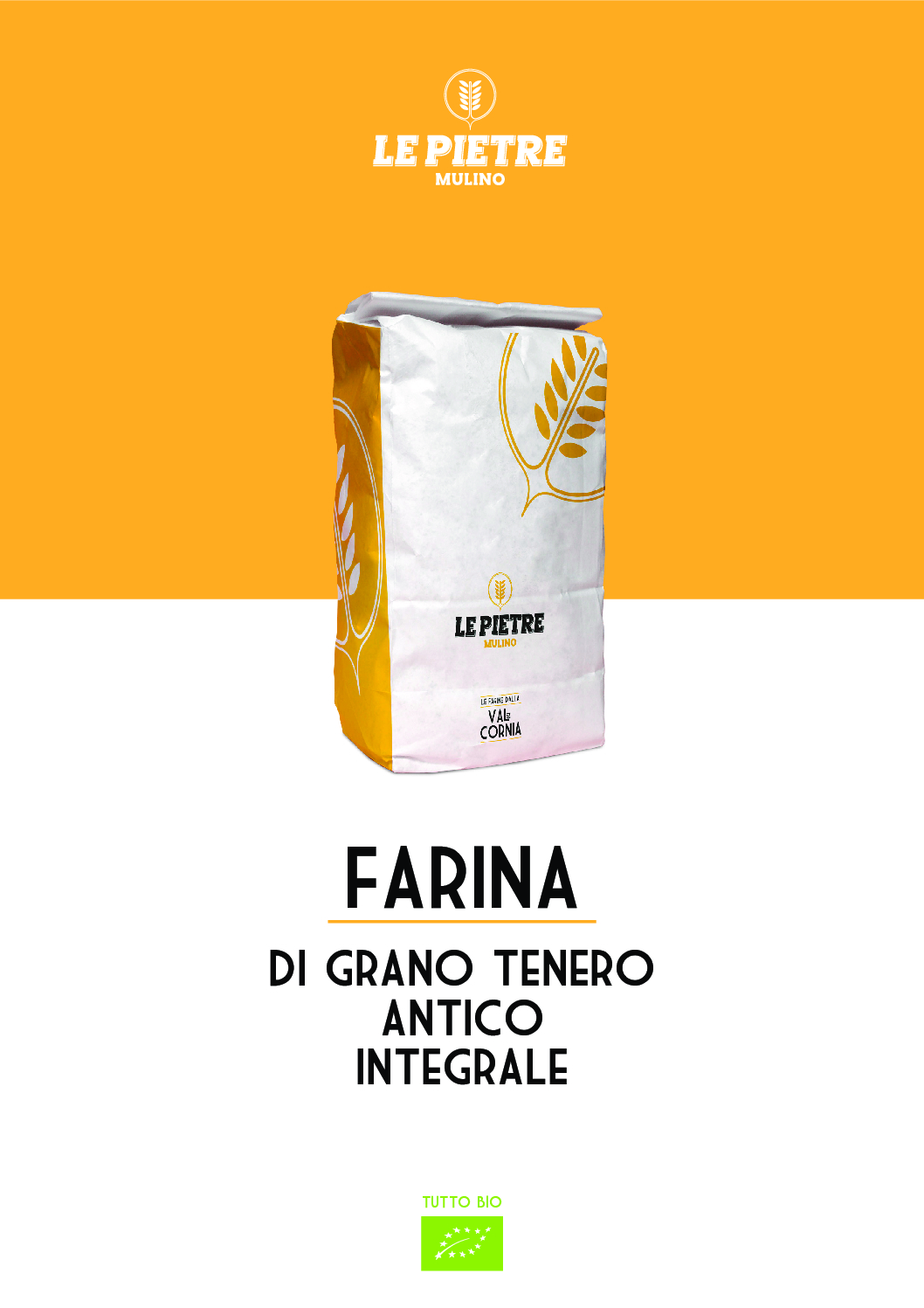 Ottenuta dalla macinazione a pietra di varietà storiche di frumento tenero biologico coltivato in Val di Cornia selezionato e privo di OGM. Il grano tenero di varietà antiche presenta tutte le caratteristiche e i vantaggi dei grani antichi, quindi valori nutrizionali più alti, maggior contenuto di sostanze nutraceutiche, maglia glutinica più leggera e facilmente digeribile.
