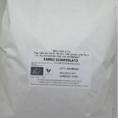 Farro monococco decorticato sfuso in sacchetto di carta, lavorato esclusivamente in Langa dalla cooperativa di agricoltori Biolanga, prodotto senza pesticidi e nel rispetto dei diritti.