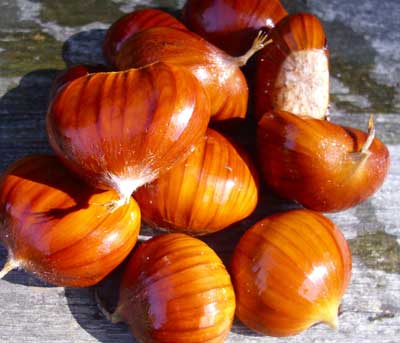 “Questi marroni sono stati messi sotto acqua purissima di sorgente e fatti asciugare al sole per una conservazione piu lunga – procedura impegnativa tradizionale. Si mantengono fino a gennaio.”