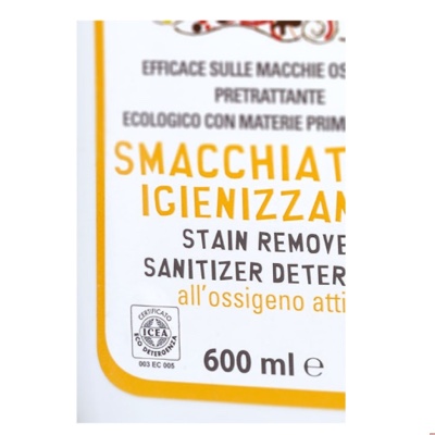 Il nostro smacchiatore ecologico è a base di uno sbiancante naturale per tessuti, l’ossigeno attivo(acqua ossigenata), che si libera non appena viene a contatto con la superficie e svolge la sua azione igienizzante entro pochi minuti. Se stai utilizzando detergenti naturali per la pulizia della casa e prodotti consapevoli, che rispettano l’ambiente e la tua salute, puoi fidarti anche di questo detergente, perché non contiene cloro, né profumi di alcun tipo.